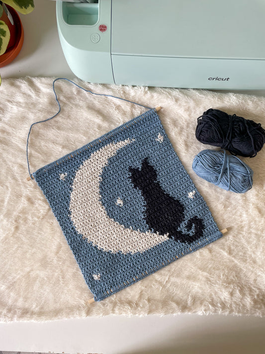 Crochet Moonlit Cat Wall Hanging | Halloween