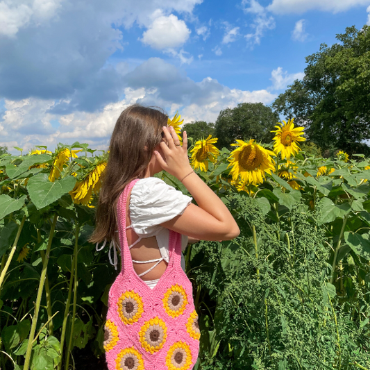 Sold outCrochet Sunflower Tote Bag in Pink