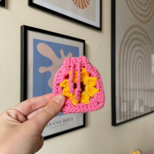 Crochet Mini Sunflower Pouch