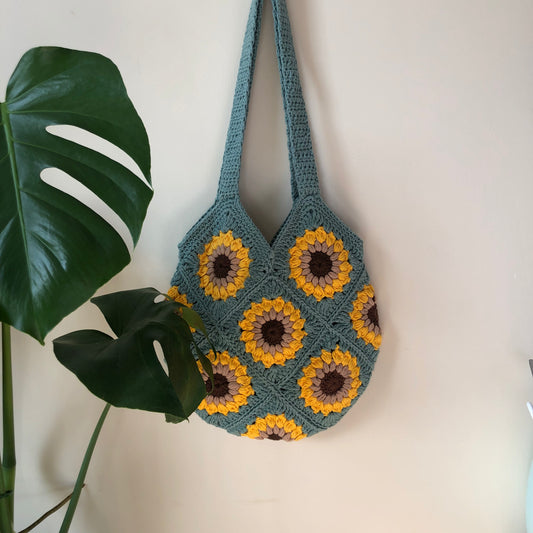 Crochet Sunflower Tote Bag in Sage Green