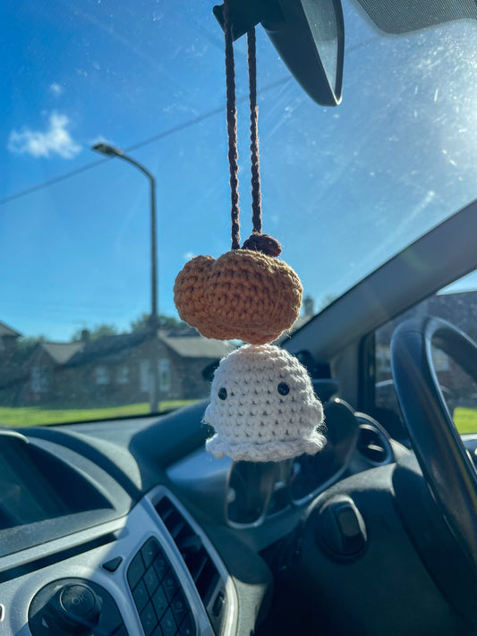 Crochet Double Ghostie/Pumpkin Car Charm | Halloween